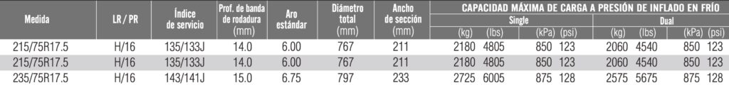 La banda de rodadura ancha y profunda ayuda a prolongar su vida útil en condiciones regionales.